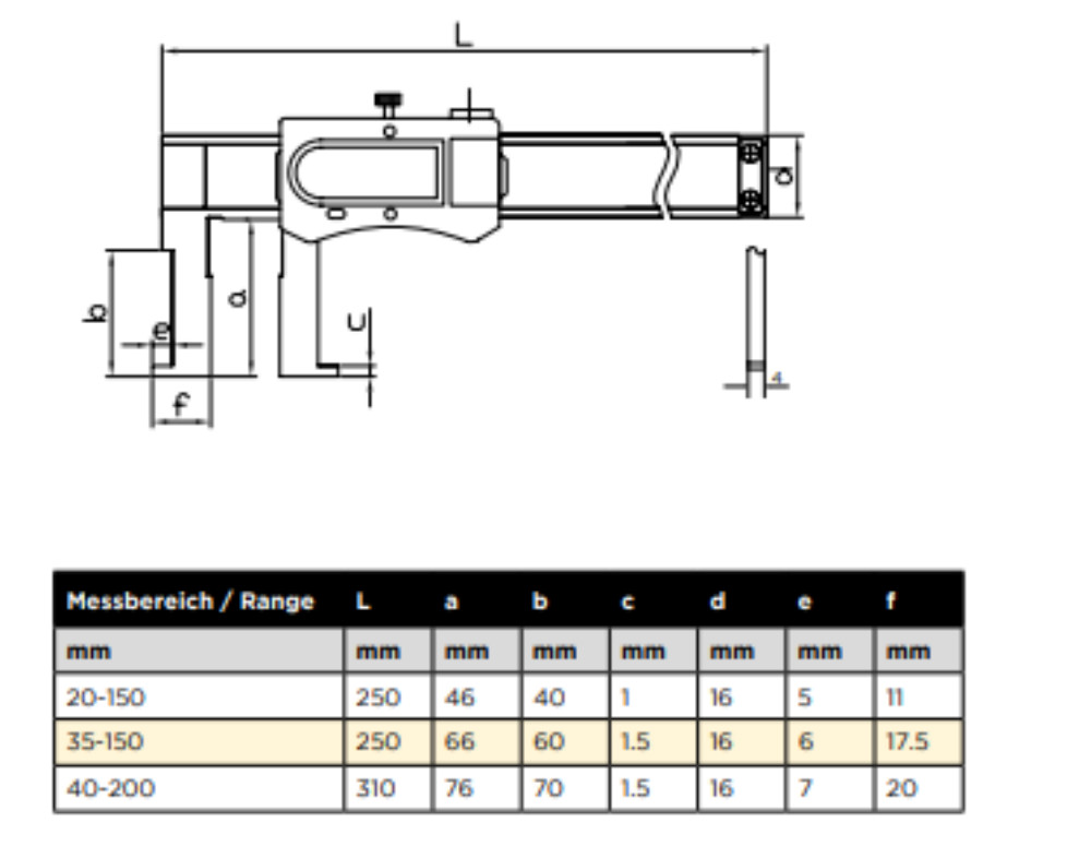 ASIMETO Tolómérő ,digitális, belső 20-150mm/0.8-6"